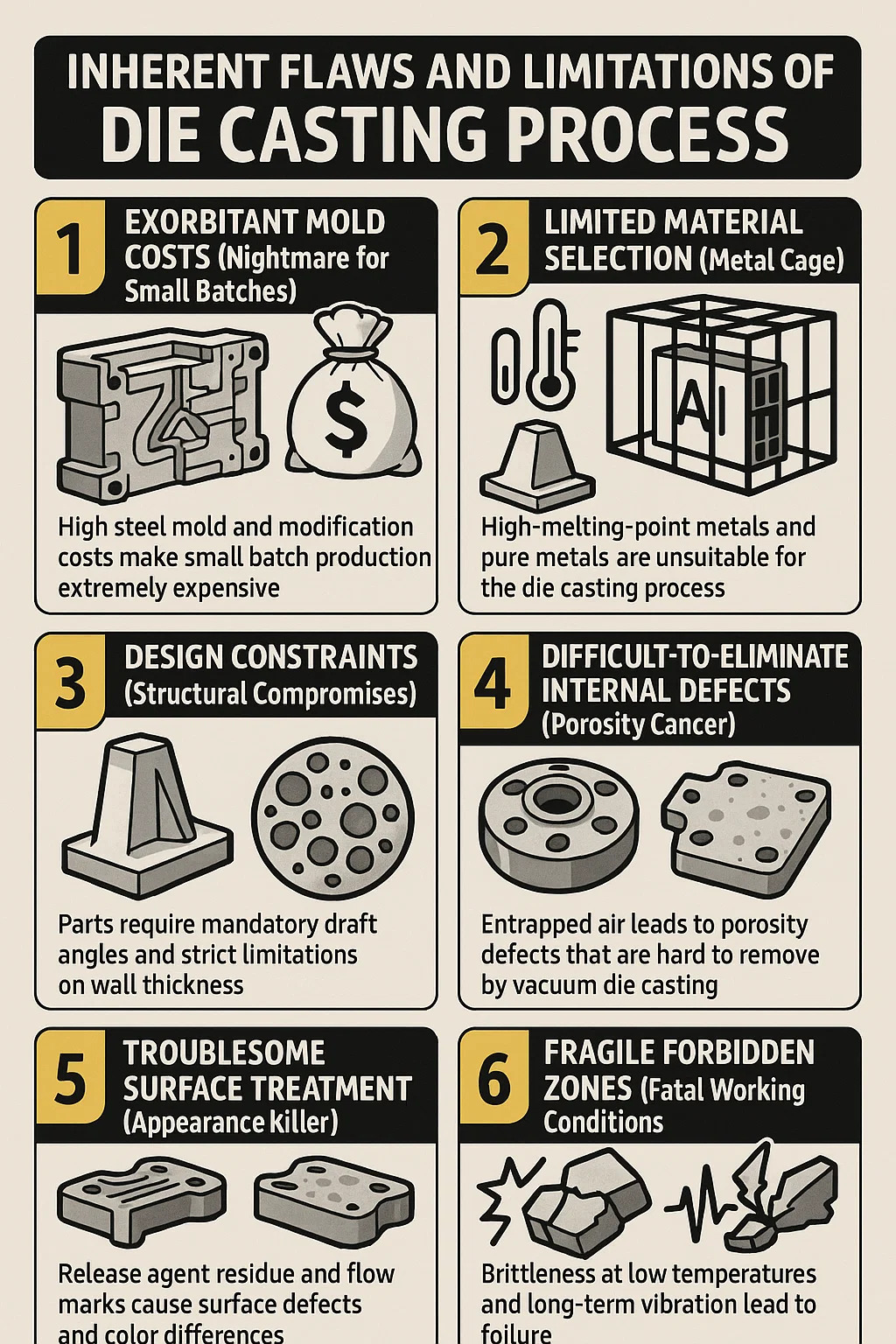 真空ダイカストは硬化も困難です。真空ダイカストは気孔率を減らすことができますが、装置が 30% 高価であり、小規模工場には手が届きません。